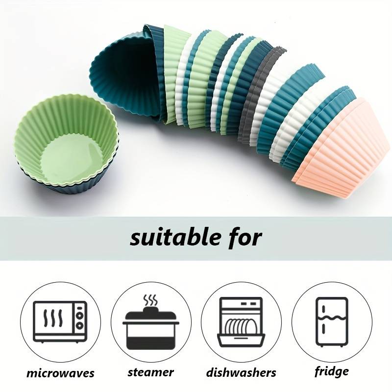 12pcs Reusable Silicone Muffin Cups. Perfect for baking for home and restaurant. Heat resistant. Food grade.