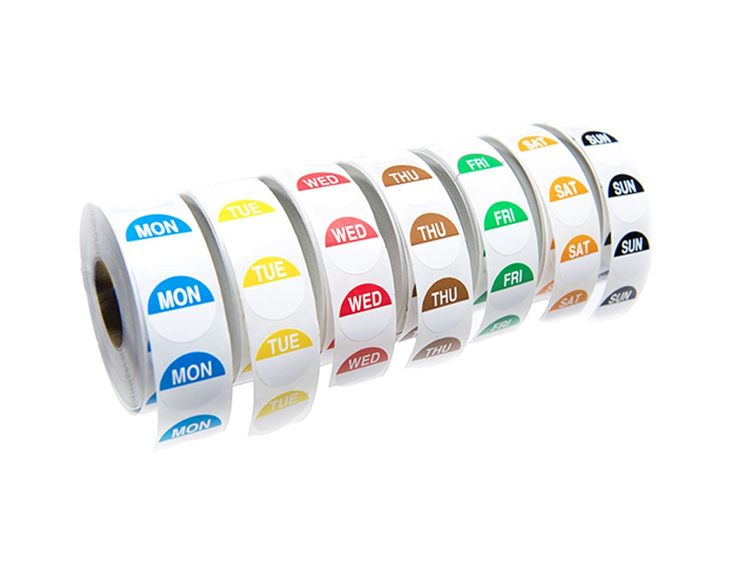 With each day assigned a different colour, day of the week dot labels are visually simple to use and identify. A gap underneath the day text allows room for further notes and information. With day of the week dot labels sold in individual rolls, an accompanying dispenser makes picking out day labels easy and hassle free. Featuring 7 rolls of day of the week dots, these labels come in a disposable plastic dispenser which keeps the rolls neatly packed and contained. Simply unpackage the set, feed each roll through the slot and pick off day of the week dots as required. These days of the week dot labels are semi-permanent so we advise removal before washing.JanSan® Food Rotation Day Dot Label 7 Day Set