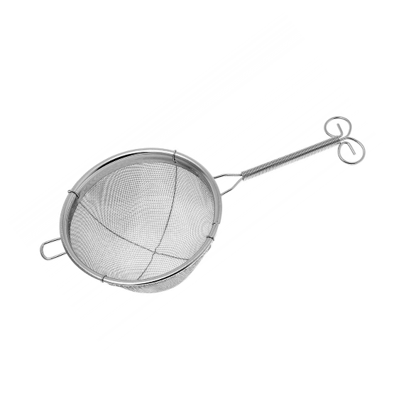 This stainless steel strainer features a double mesh strain, for jobs that require fine pieces of ice, tea or herbs. This compact design is ideal for smaller glasses and cups. A loop allows drinkers to rest the strainer on the rim of glasses and mugs.